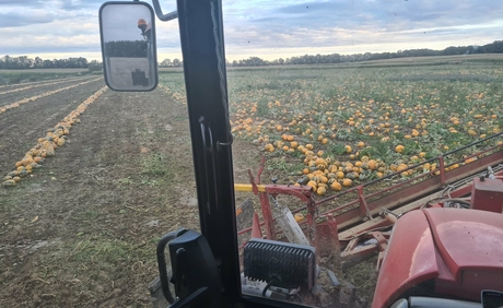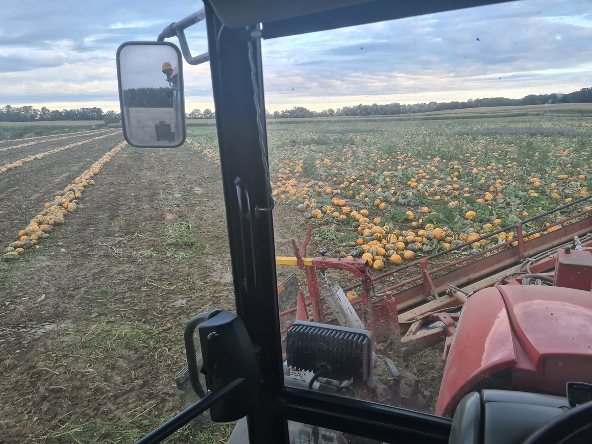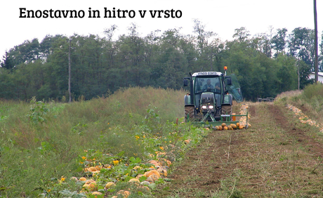 Plug za spravilo buč v vrste, delovne širine 3,4 in 4,5m. Plug ima funkcijo, da razvrsti buče v vrsto pred kombajniranjem. Sestavljen je iz dveh valjev, različnih premerov. Valj z manjšim premerom ima pogon s hidravličnim hidro motorjem, drugi valj kopira teren in potisne ostanke pod valj. Delovno širino pluga reguliramo s hidravličnim cilindrom. Hidravlični plug je montiran na prednji tritočkovni priklop traktorja, na zadnji tritočkovni priklop pa montiramo mulčer delovne širine od 2 do 2,8 m (priporočamo kladivar). Tako lahko z enim prehodom traktorja spravimo buče v vrsto in kakovostno z mulčamo zelene ostanke