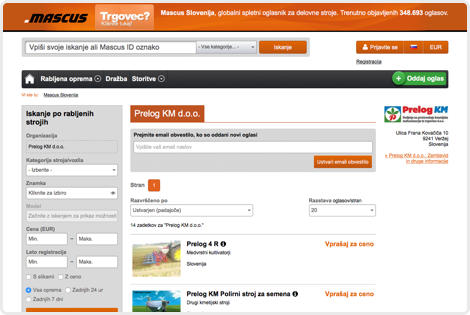 Našo zalogo rabljene kmetijske mehanizacije lahko najdete na spletnem portalu Mascus.